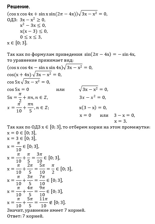 (cos x cos 4x+sin x sin(211-4x))√3x-x²-0