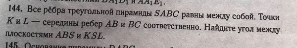 Геометрическая задача. Ответ: arccos...