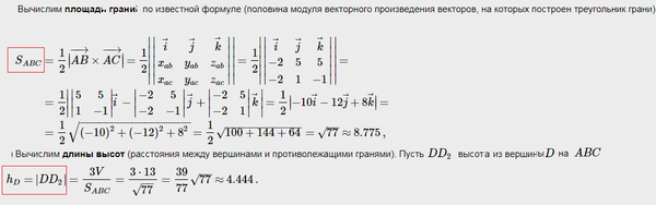 между ребрами АВ и АС; 3) площадь грани АВС; 4) объем пирамиды ABCD; 5)