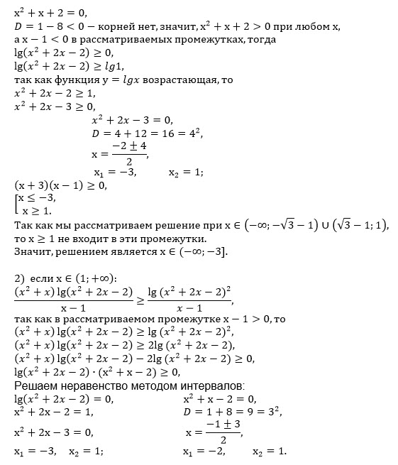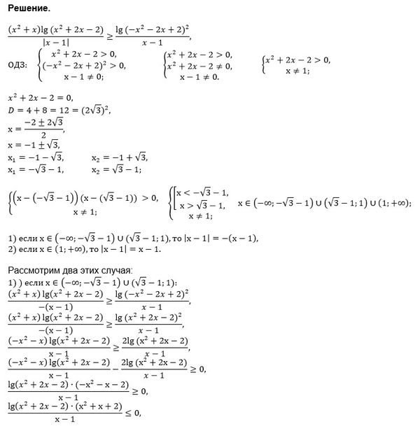 Решить неравенство ((x^2+x)lg(x^2+2x-2))/|x-1| ≥ (lg(-x^2-2x+2)^2)/(x-1)