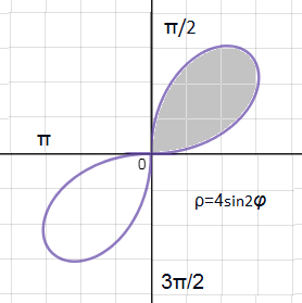 S=2 ∫ ^(π/2)_(0)(1/2)* ρ^2( φ )d φ = ∫ ^(π/2)_(0) (4sin2φ)^2d φ =