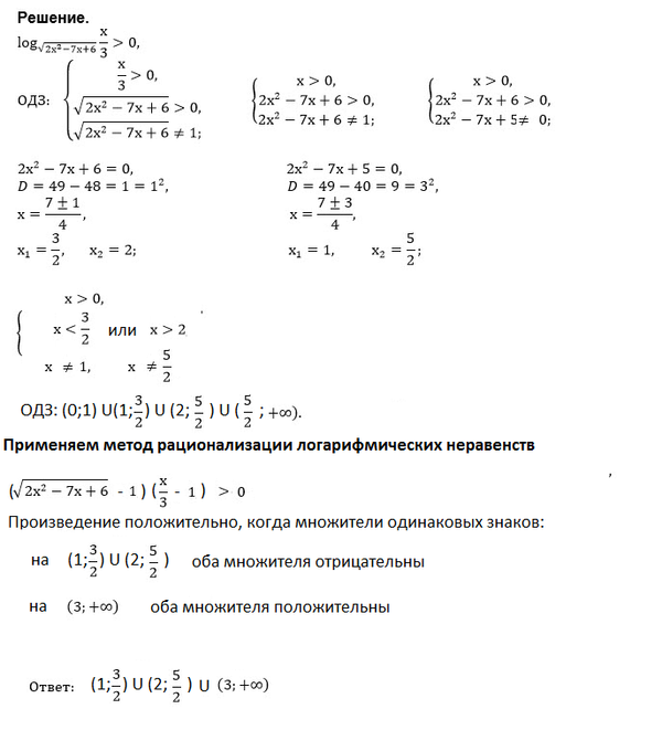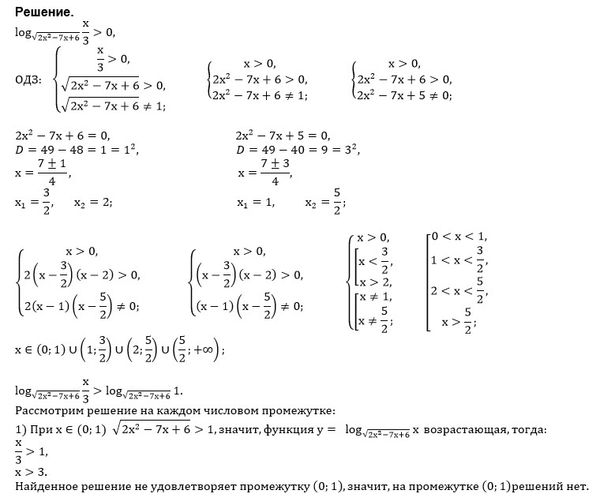 Решить неравенство log(sqrt(2x^2-7x+6)) (x/3) > 0