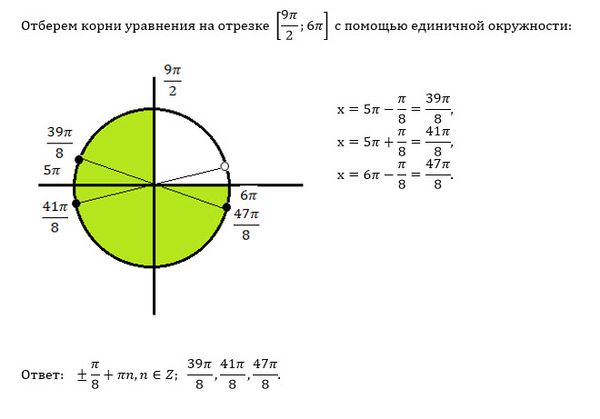 Укажите корни, принадлежащие отрезку [9π/2 ; 6π]