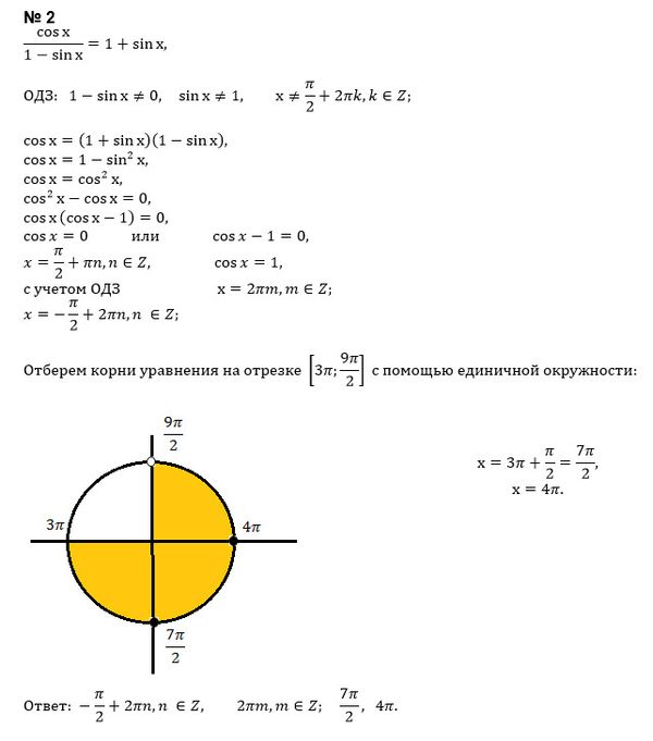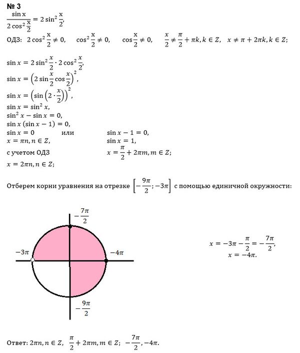 cosx/sinx+1=sinx-1 [2П, 7П/2] cosx/1-sinx=1+sinx [3П, 9П/2] sinx/2cos^2 x/2 = 2sin^2 x/2 [-9П/2, -3П]