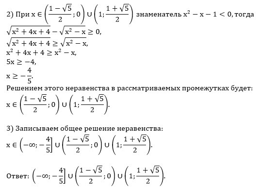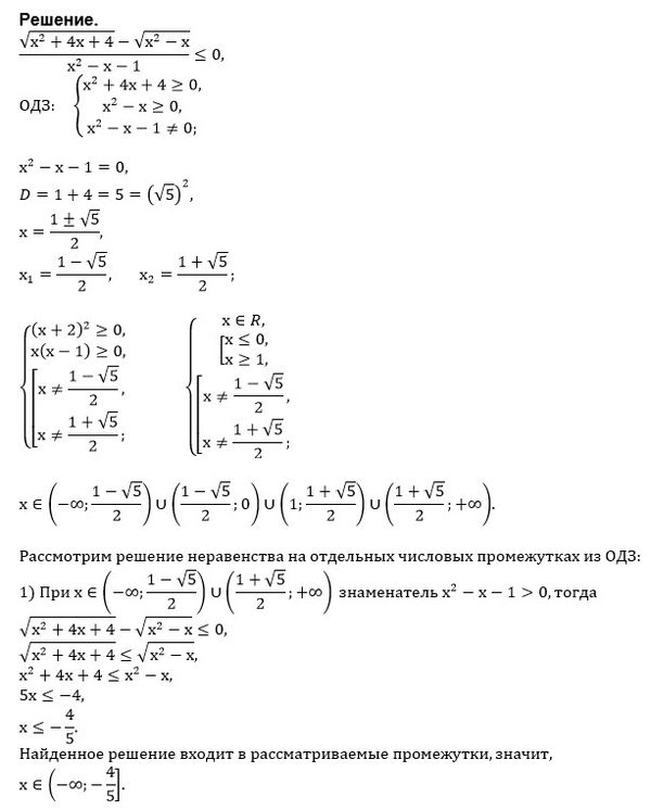 О т в е т. (- ∞ ; -4/5]U (1-sqrt(5))/2;0)U(1;(1+sqrt(5))/2)