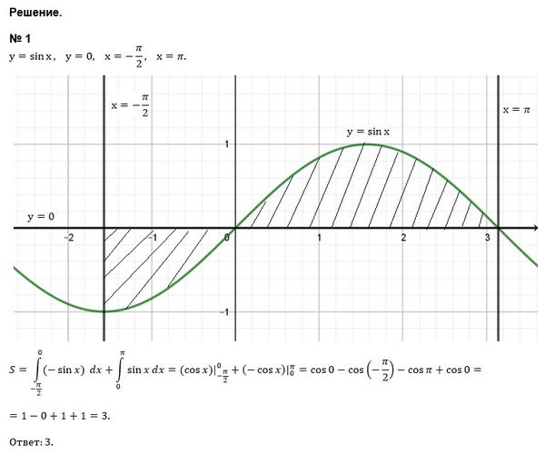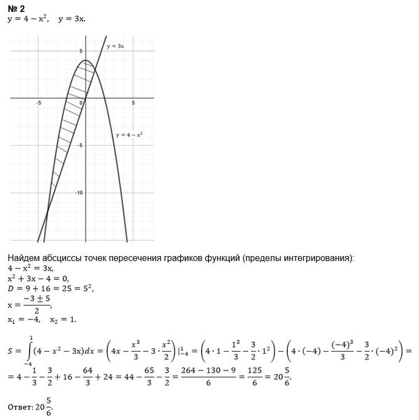 Вычислить площадь фигуры, ограниченной линиями 1. [m] y = \sin x, \ y = 0, \ x = -\frac{\pi}{2}, \ x = \pi; [/m] 2. [m] y = 4 - x^2 \ и \ y = 3x. [/m]