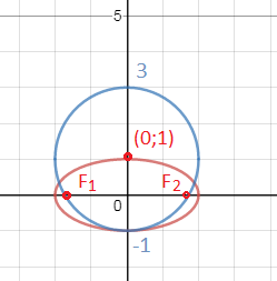 По условию центр окружности в точке (0;1)