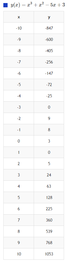 y=x^3+x^2-5x+3 нужно составить таблицу и начертить график