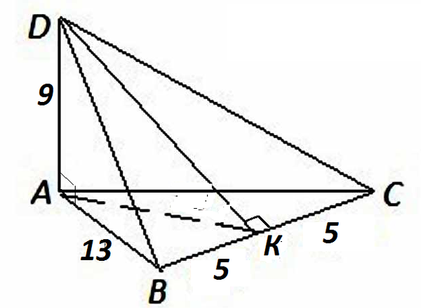 KD^2=DA^2+AK^2=9^2+12^2=81+144=225