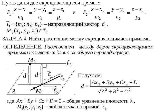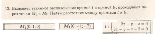 рез точки M₁ и M₂. Найти расстояние между прямыми l и l₂