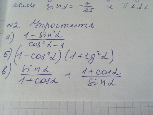б) (1–cos²a)(1+tg²a)