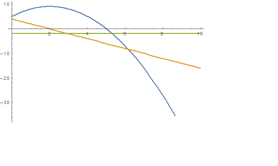 x=5+4t-t^2 - парабола, ветви вниз
