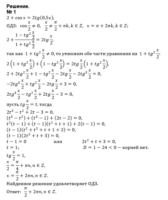 Решите уравнения методом универсальной постановки 2+cos(x)=2tg(0,5x) sqrt(3)sin(x - pi/6)+cos(pi/6 - x) = 2