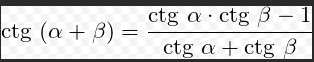 ctg( α + β )=(ctg α *ctg β -1)/(ctg α +ctg β ) =