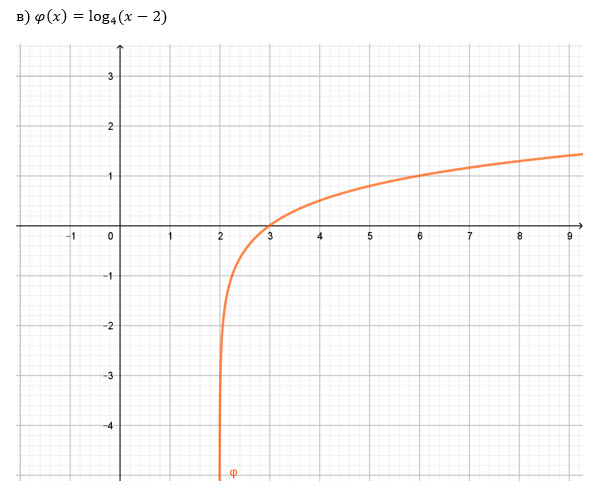 Построить графики функции a) f(x) = log_2(x-1) б) g(x) = 2 + log_2x в) ψ(x) = log_4(x-2) г) δ(x) = 3 + log_4x