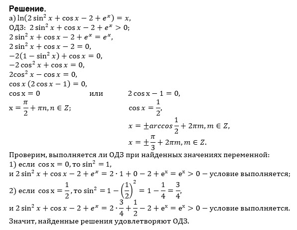 a) ln(2(sin^2)*x+cos*x - 2 - e^x)=x