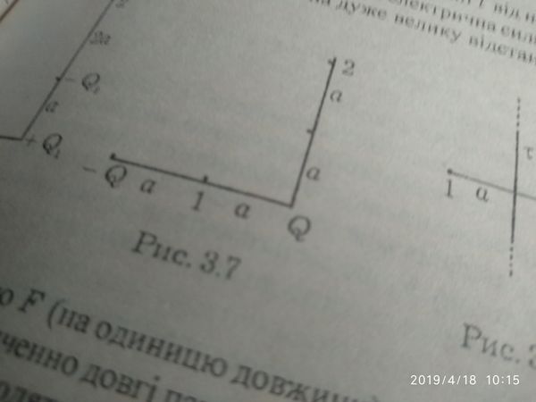 Определить работу, которую выполняют силы поля при перемещении заряда Q1 = 50нКл от точки 1 до точки 2 в поле, созданное зарядами Q и -Q,|Q|= 1 млКл; а = 0,1 м.