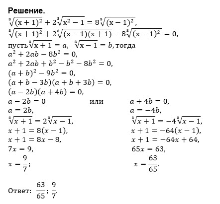 ∛((x+1)^2)+2∛(x^2-1)=8∛((x-1)^2)