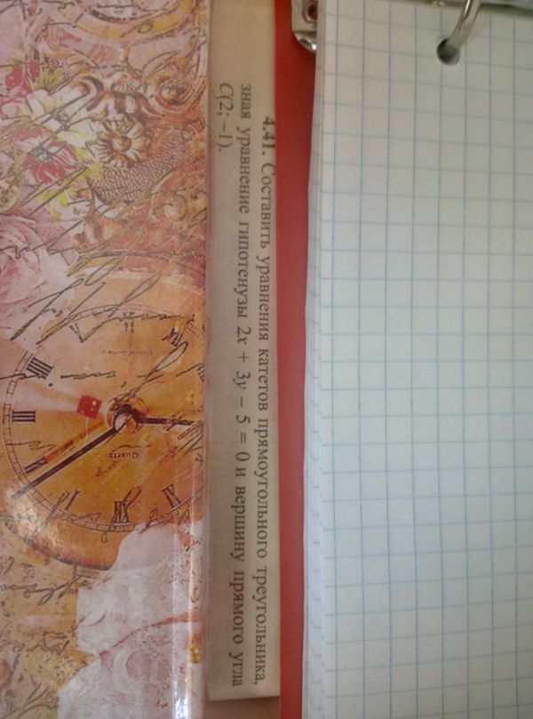 Так как катеты взаимно перпендикулярны, то угловой коэффициент второй прямой k_(2)=-1/k_(1)