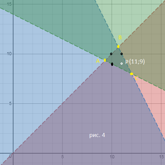 Внутри области одна точка (11;9)