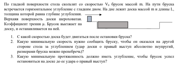 1. С какой скоростью доска будет двигаться после остановки бруска?
