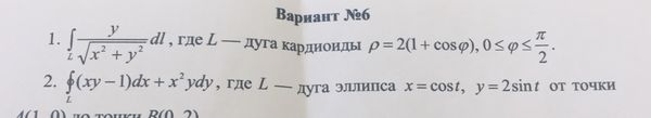 ∫L y / √(x^2 + y^2) dl, где L — дуга кардиоиды ρ = 2(1 + cos φ), 0 ≤ φ ≤ π/2.