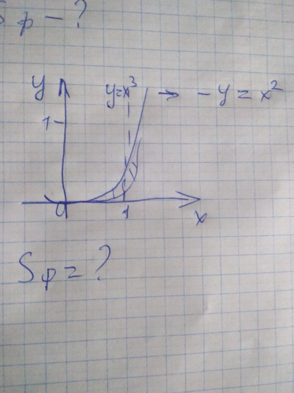Рисунок нарисован неверно. на [0;1] кривая y=x^2 расположена [b]выше[/b] кривой y=x^3, S= ∫ ^(1)_(0)(x^2-x^3)dx= [b]([/b](x^3/3)-(x^4/4) [b])[/b]|^(1)_(0)= =(1/3)-(1/4)=(4/12)-(3/12)= [b]1/12[/b]