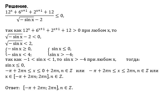 \frac{12^x + 6^{x+1} + 2^{x+1} + 12}{\sqrt{-\sin x} - 2} \le 0