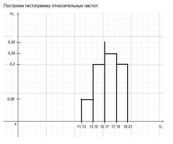 Выборка задана интегрально. Найти ее среднее значение, построить гистограмму относительных частот.