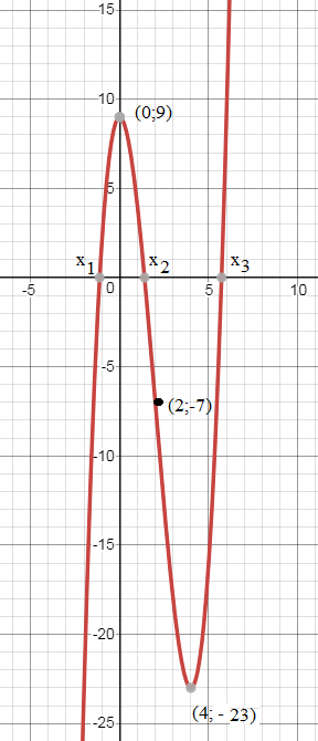 y < 0 при x < x_(1) и х_(2) < x < x_(3)