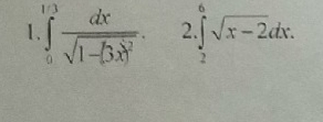 1.=(1/3) ∫ ^(1/3)_(0)d(3x)/sqrt(1-(3x)^2)=