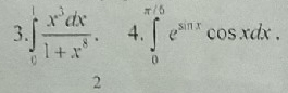 ∫ ^(1)_(0)x^3dx/(1+x^8)=(1/4)∫ ^(1)_(0)d(x^4)/(1+(x^4)^2)=