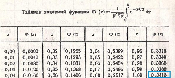 Ф(1)=0,3413 ( см. таблицу 2)