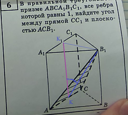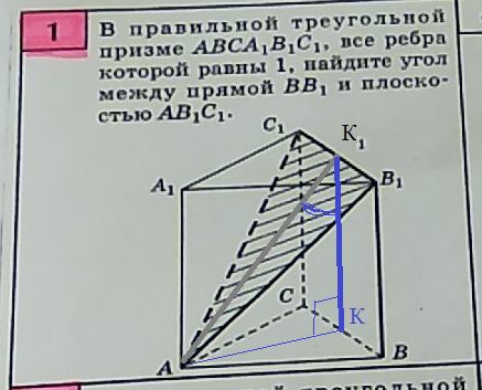 K_(1)M-проекция KK_(1) на пл. АВ_(1)С_(1)