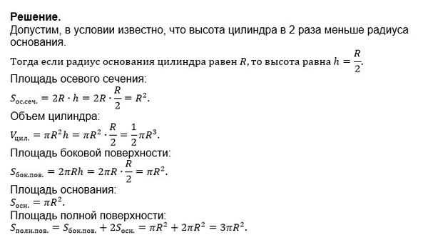 Дано; Цилиндр в 2 раза меньше радиуса...