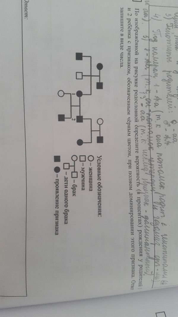 Родитель 2 имеет доминантный фенотип, а один из его родителей рецессивная гомозигота. Следовательно все потомство рецессивной и доминантной гомозигот одинаково (1 закон Менделя) и является гетерозиготой по это у признаку Аа(родитель 2).