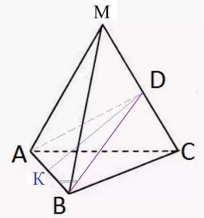 [b]∠ DBK= arccos(sqrt(3)/3)[/b] - о т в е т.