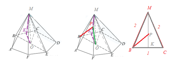 ОК=sqrt(3)/2 - высота равностороннего треугольника ВОС