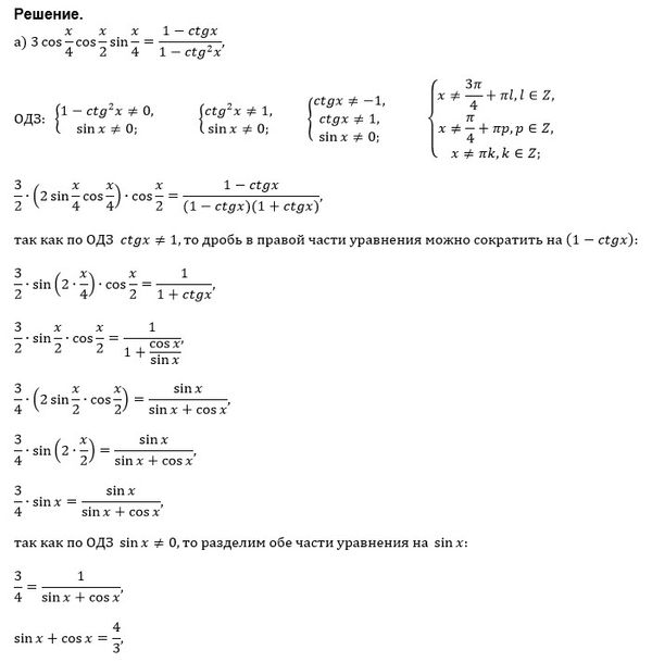 а) Решить уравнение [m]3cos\frac{x}{4}cos\frac{x}{2}sin\frac{x}{4} = \frac{1-ctgx}{1-ctg^2x}[/m] б) Укажите корни, принадлежащие интервалу (-2Pi; -3Pi/2)