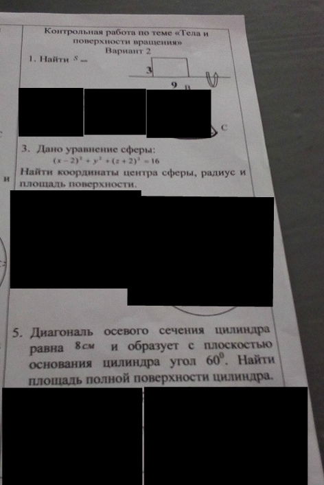 5) Диагональ осевого сечения цилиндра равна 8 см и образует с плоскостью основания цилиндра угол 60 ° . Найти площадь полной поверхности цилиндра.