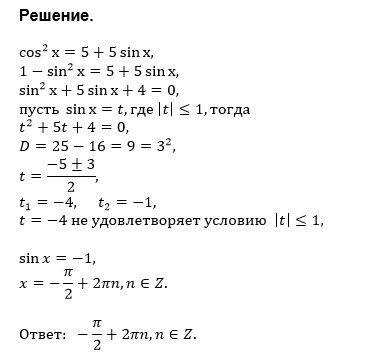 Решить уравнение cos^(2)x = 5 + 5sinx...