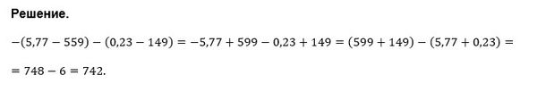 Раскрой скобки и найди значение выражения −(5,77−559)−(0,23−149) .