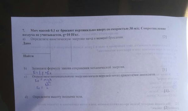 В)запишите формулу закона сохранения механической энергии