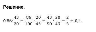 Найдите значения выражения 0,86:43/20....