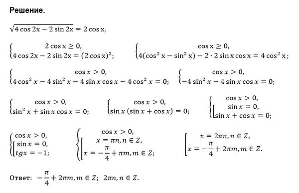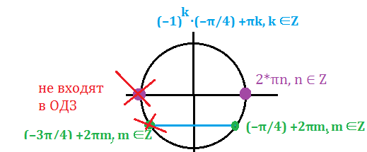 О т в е т. 2*πn, n ∈ Z ; (-π/4)+2πm, m ∈ Z