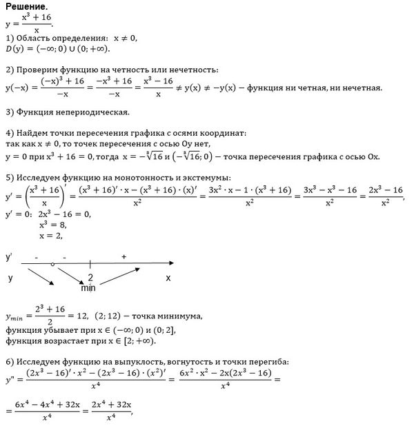 Помогите, пожалуйста, исследовать функцию с применением производной и построить ее график y=(x^3+16)/x.
