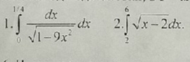 ∫ ^(1/4)_(0)dx/sqrt(1-(3x)^2)=