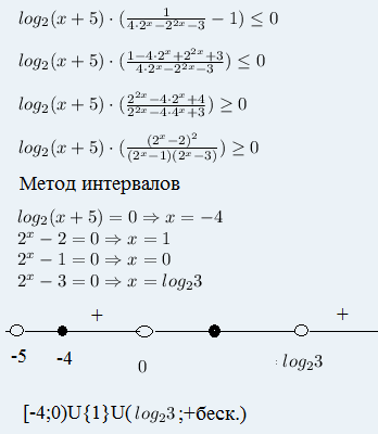 Решить неравенство (log2(x+5))/(2^(x+2)-4^x-3) меньше или равно log2(x+5)