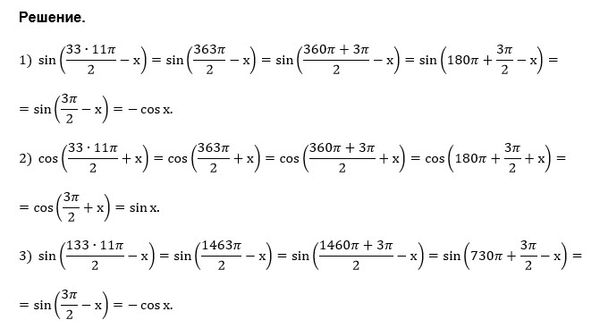 N=11 C) Используя формулы приведения упростить: 1) sin(33Nπ/2 + x) 2) cos(33Nπ/2 + x) 3) sin(133Nπ/2 - x)