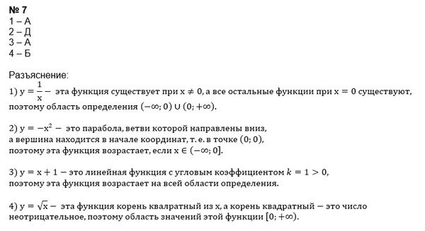 4. График какой функции имеет вершину (0;2) ... 7. Установите соответствие между функциями (1-4) и с-ми которое имеет эта функция